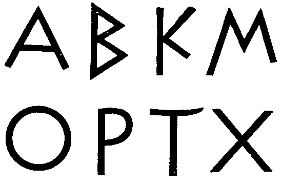 Этот первоисточник — шрифт древнегреческих надписей (VII—VI вв. до н.э.). Он необычайно прост, построен скупыми чёткими линиями равномерной толщины, которые образуют простые геометрические формы: круг, треугольник, дуги, отрезки прямой, соединяемые в различных вариантах. При кажущейся бедности этот шрифт полон сдержанной силы и выразительности.