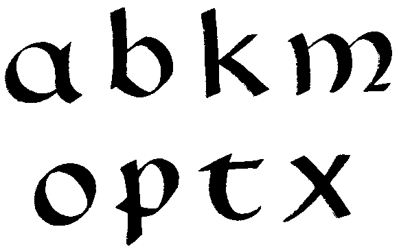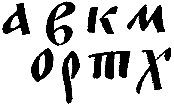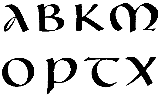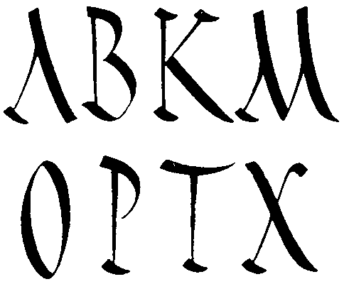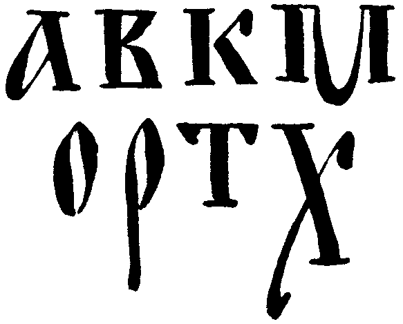 Таков шрифт рустика с его характерными узкими (экономными!) пропорциями, с непривычным для нас соотношением тонких стоек и жирных поперечных штрихов. Это не лучший вариант рукописного маюскула: он пестроват и даже несколько вульгарен.