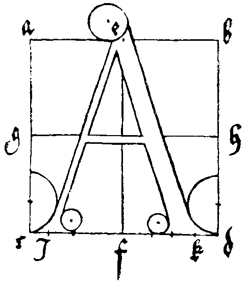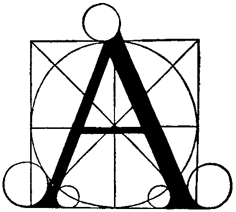 Лука Пачоли (1509) предложил построение буквы на основе квадрата (каждая из сторон которого разделена на девять частей), его диагоналей и вписанной в него окружности. Все дуги образованы точным движением циркуля. Этот шрифт красив, хоть и несколько однообразен. Альбрехт Дюрер (1524) также использовал квадрат со сторонами, разделенными уже на десять частей, но освободил построение шрифта от педантизма и усложненности, свойственных схеме Пачоли. Он отказался от использования окружности и диагоналей. Некоторые детали он рекомендовал рисовать от руки. Многие буквы исполнялись в разных вариантах. В сравнении с шрифтом Пачоли шрифт Дюрера живее и контрастнее (то есть разница в толщине штрихов в нем сильнее).