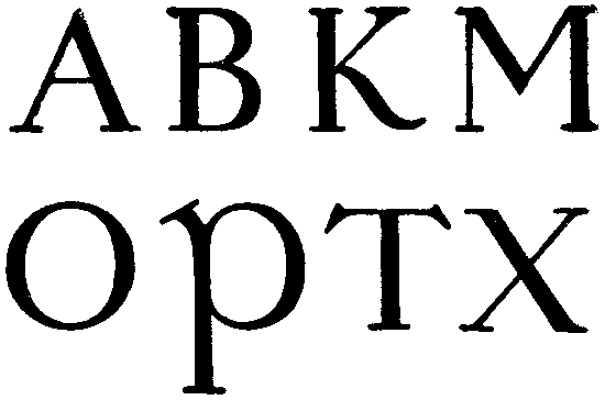 Значительно приятнее шрифт квадрата. Правда, он уступает рустике в беглости начертания, а по отделанности стоит ближе к шрифту надписей. Впрочем, и это рукописный шрифт: он написан, а не начерчен, в нем ощущается естественность движения пишущей руки, о чем свидетельствует и заметная округлённость некоторых штрихов.