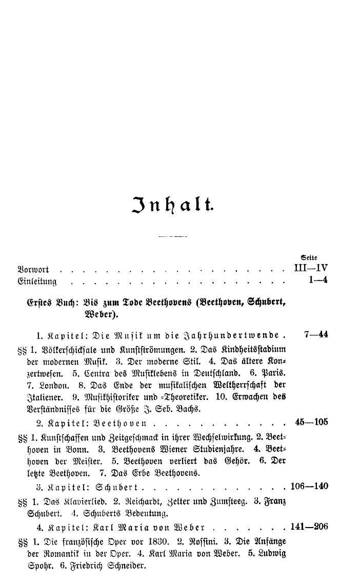Erstes Buch: Bis zum Tode Beethovens (Beethoven, Schubert, Weber). |