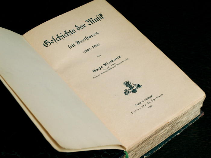 Есть очень интересная книга, которая, как нам кажется, не издавалась на русском языке − «Geschichte der Musik seit Beetchoven (1800-1900)» ("История музыки с Бетховена") известного немецкого музыковеда Хуго Риманна (Hugo Riemann). Ниже показана сама книга, титульный лист, и процесс аккуратного сканирования.